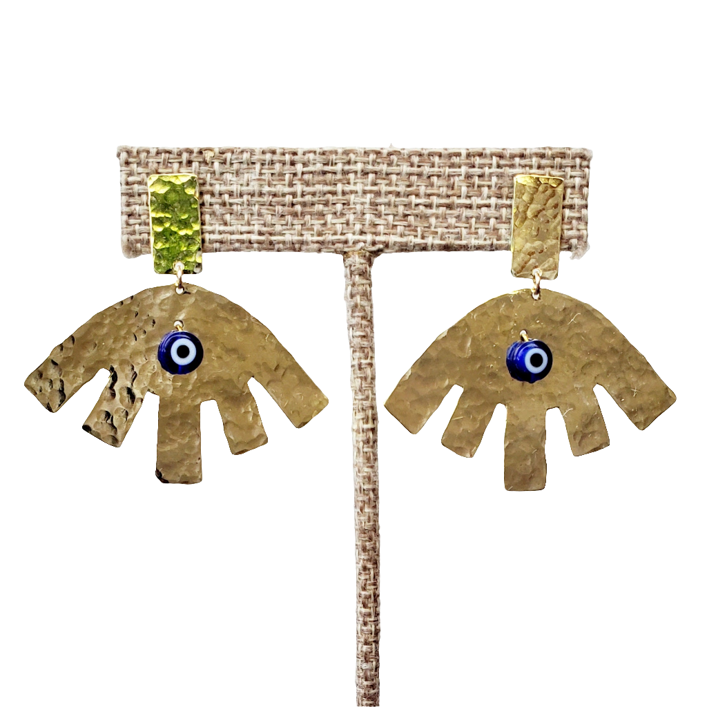 Add a touch of charm to your outfit with our Eye-conic Energy earrings. These hammered hanging cuties feature an evil eye design, perfect for warding off bad vibes!