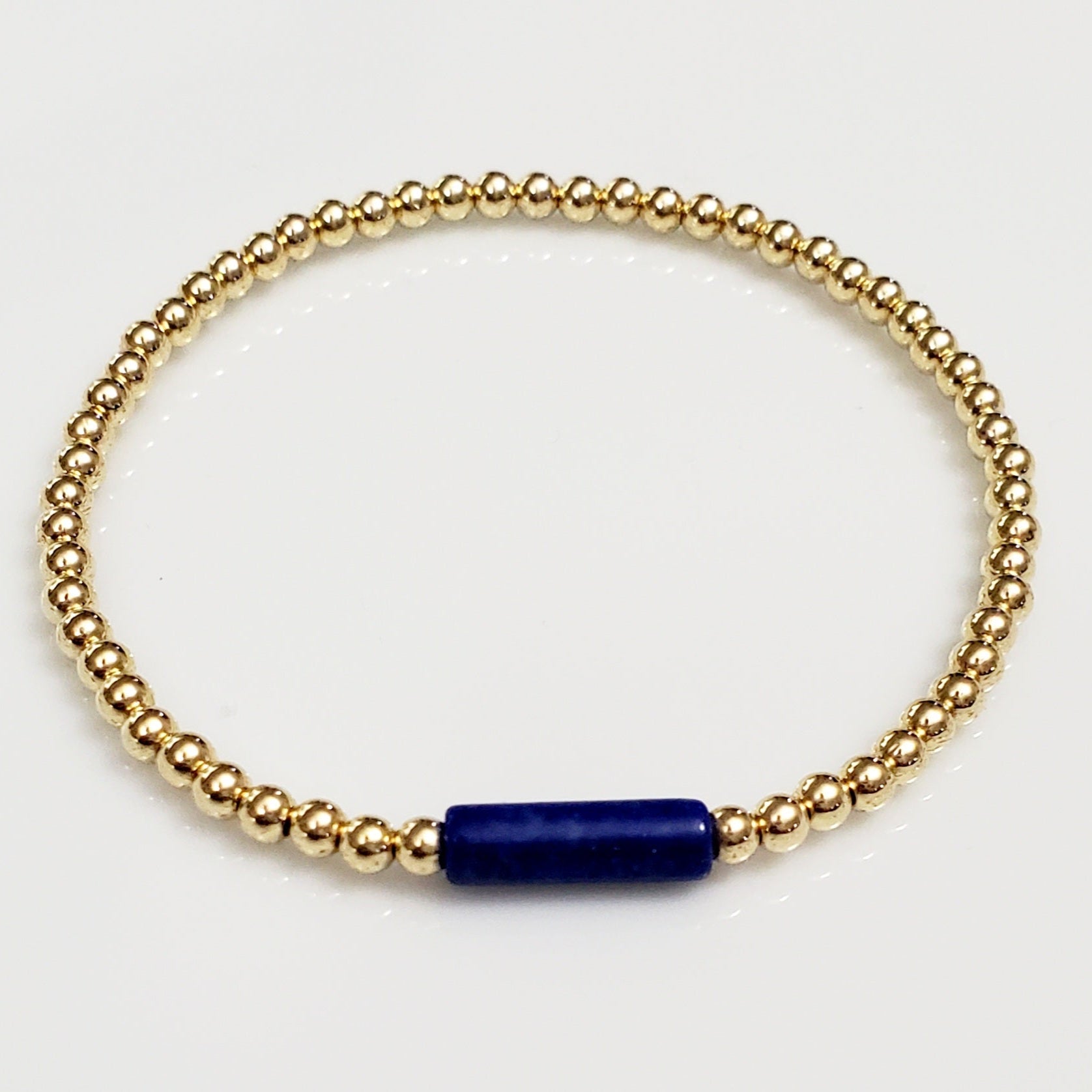 Boost your mood with the Good Energy Bracelet! This stackable accessory features a semi-precious stone center bead with 3mm round gold-filled, rose gold-filled or sterling silver beads on a stretchy elastic cord, providing a stylish and comfortable way to elevate your energy levels, whether wearing it solo or in a stack. This bracelet will give you good vibes all day long!